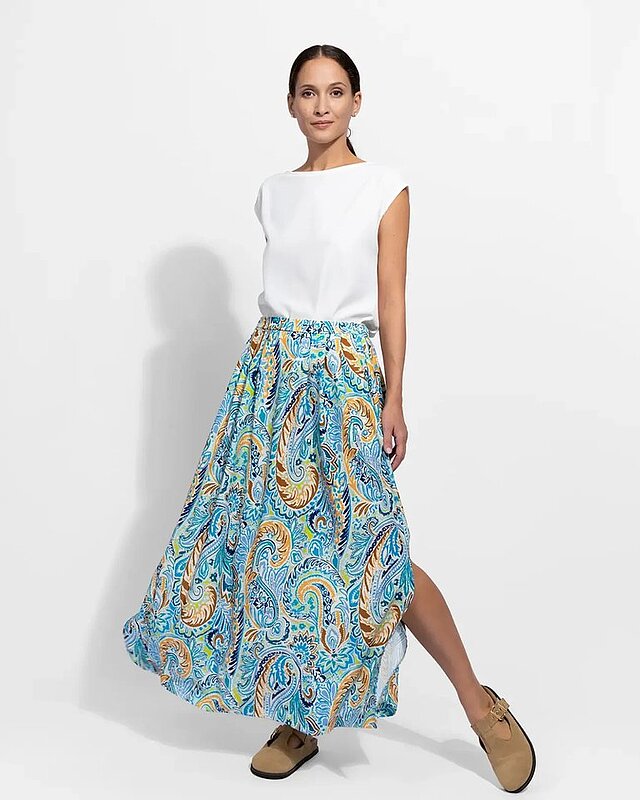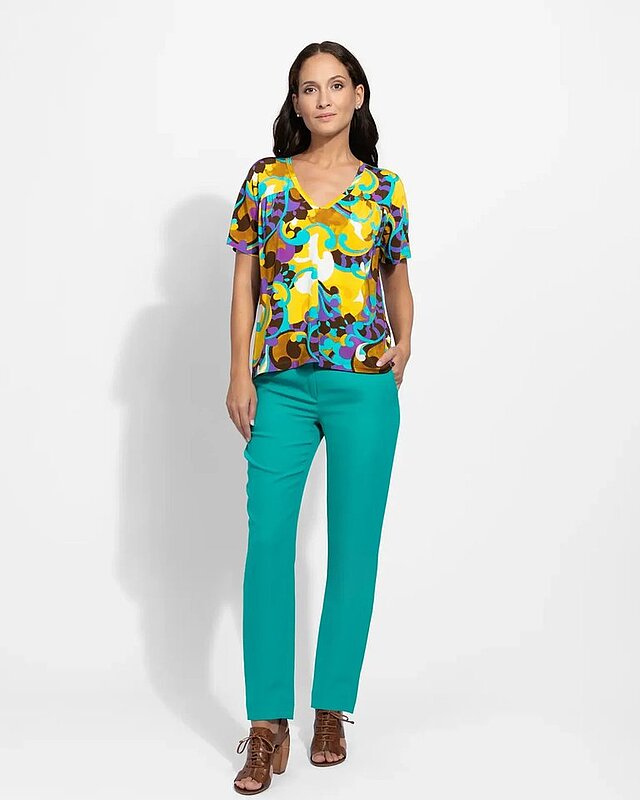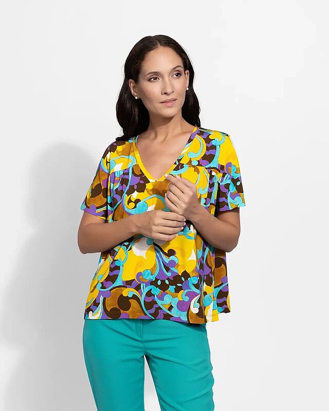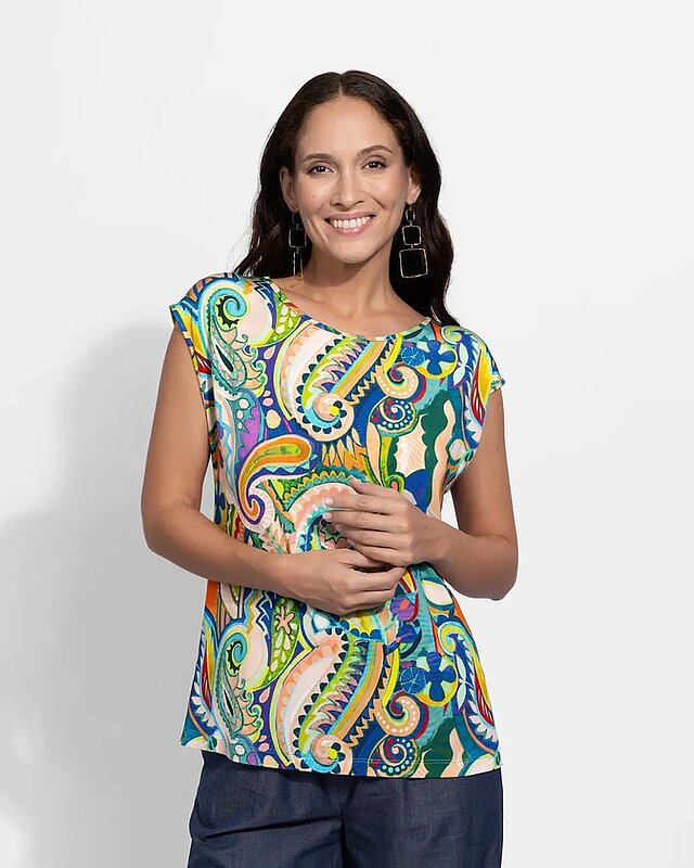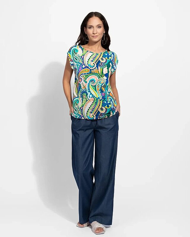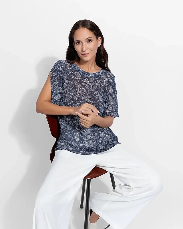 Geometrische und florale Muster auf edler bestickter Baumwolle, luftigem Leinen und lebhafter Viskose sorgen für einen Hauch von italienischer Exklusivität.